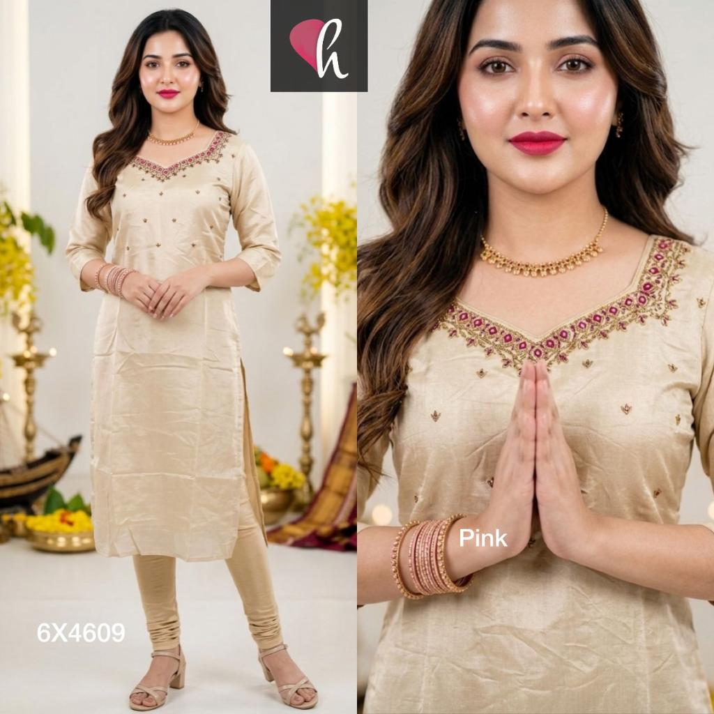 Cosmo silk fabric slit Kurti with handwork n mirror design