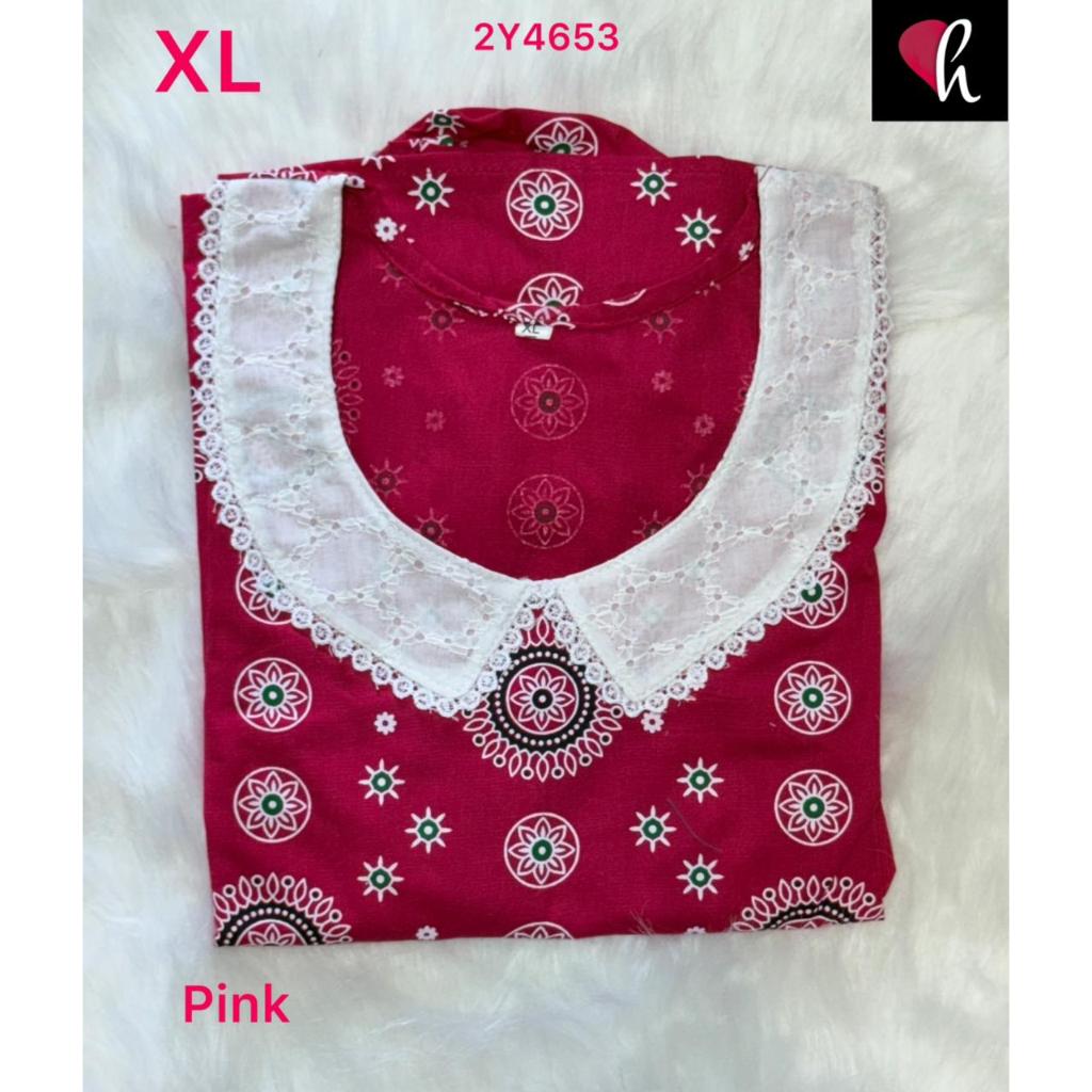 Cotton Maxi frock with lace work neck in different colours n prints