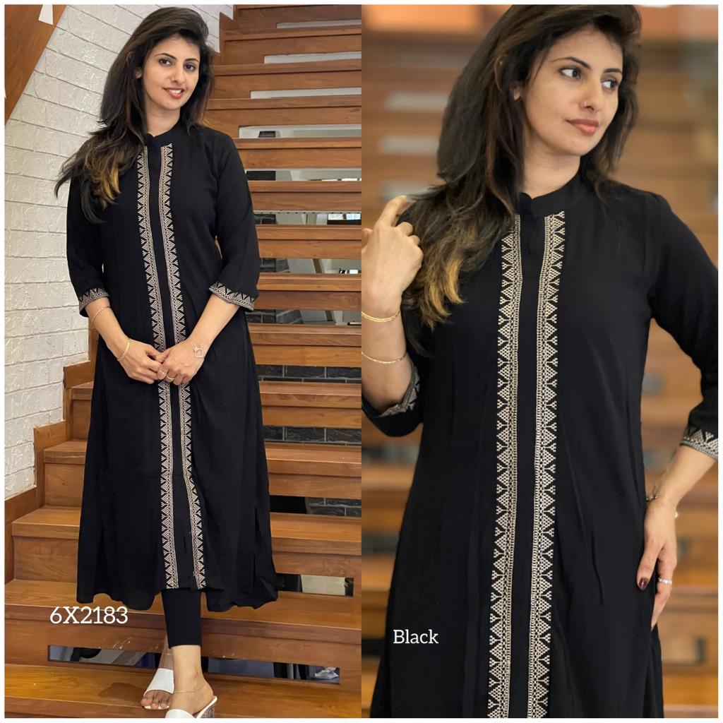 Quality products Diamond wrinkle rayon long kurti with embroidery