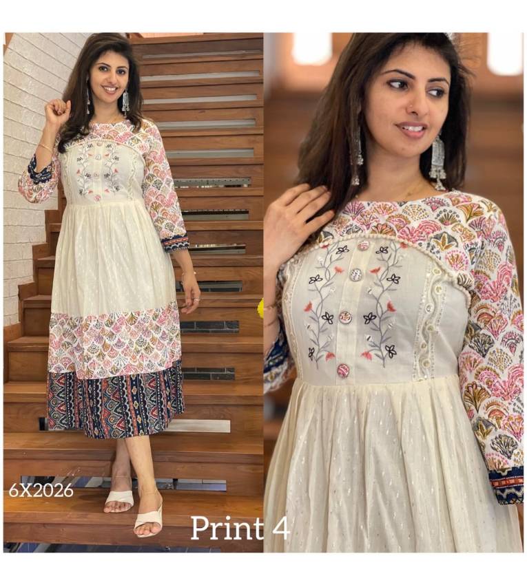 Off-white soft cotton n printed cotton mix frock