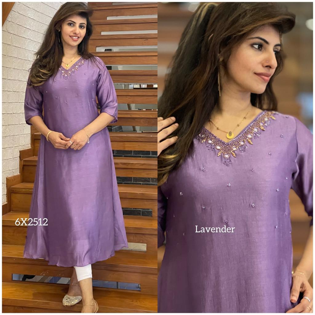Vichitra silk Aline kurti with piping hand work