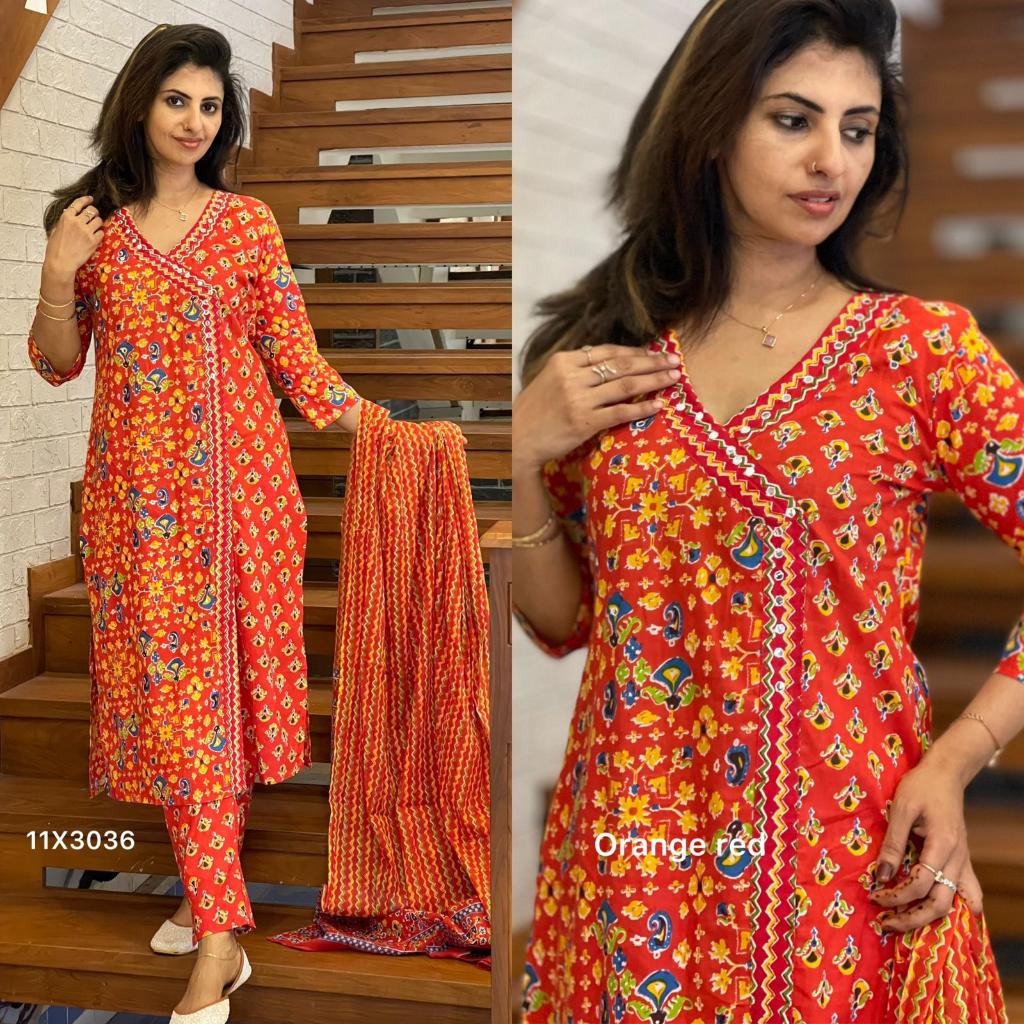 Length : 46”Lining : NoPant length : 38”Shawl : dual printed soft cotton 2.1 x 1.1 mtr