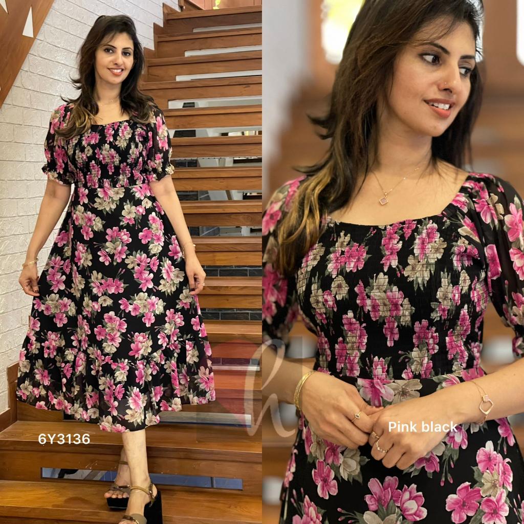 Length : 47”Lining : YesAdjustable back knotBottom frill Puff sleeves with elastic endElastic shoulders