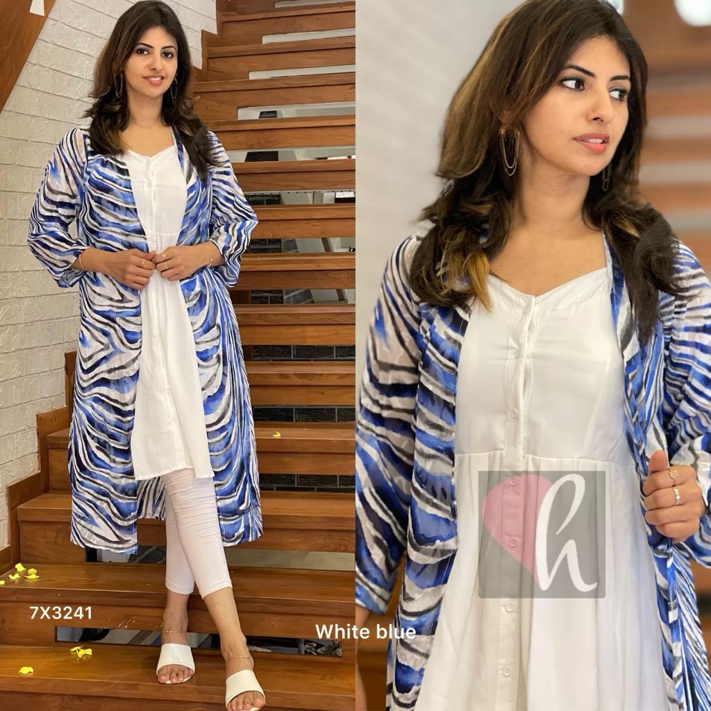 Diamond poly mix Ajanta slip kurti + separate crush organza self design gown