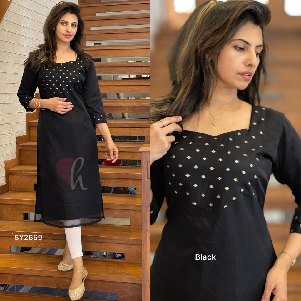 Soft organza slit kurti with golden butta patchwork