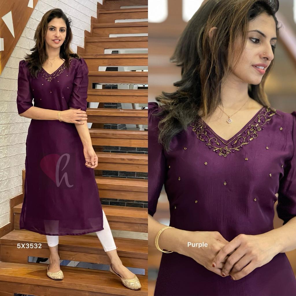 Vichithra silk slit kurti with piping n beads handwork