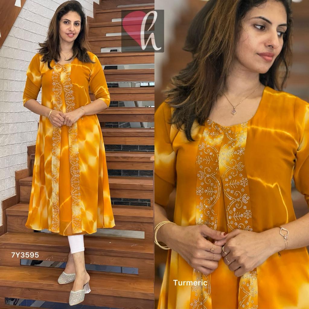 Faux Georgette dyed cloud print Aline kurti with attached shrug model having zeroski spread design
