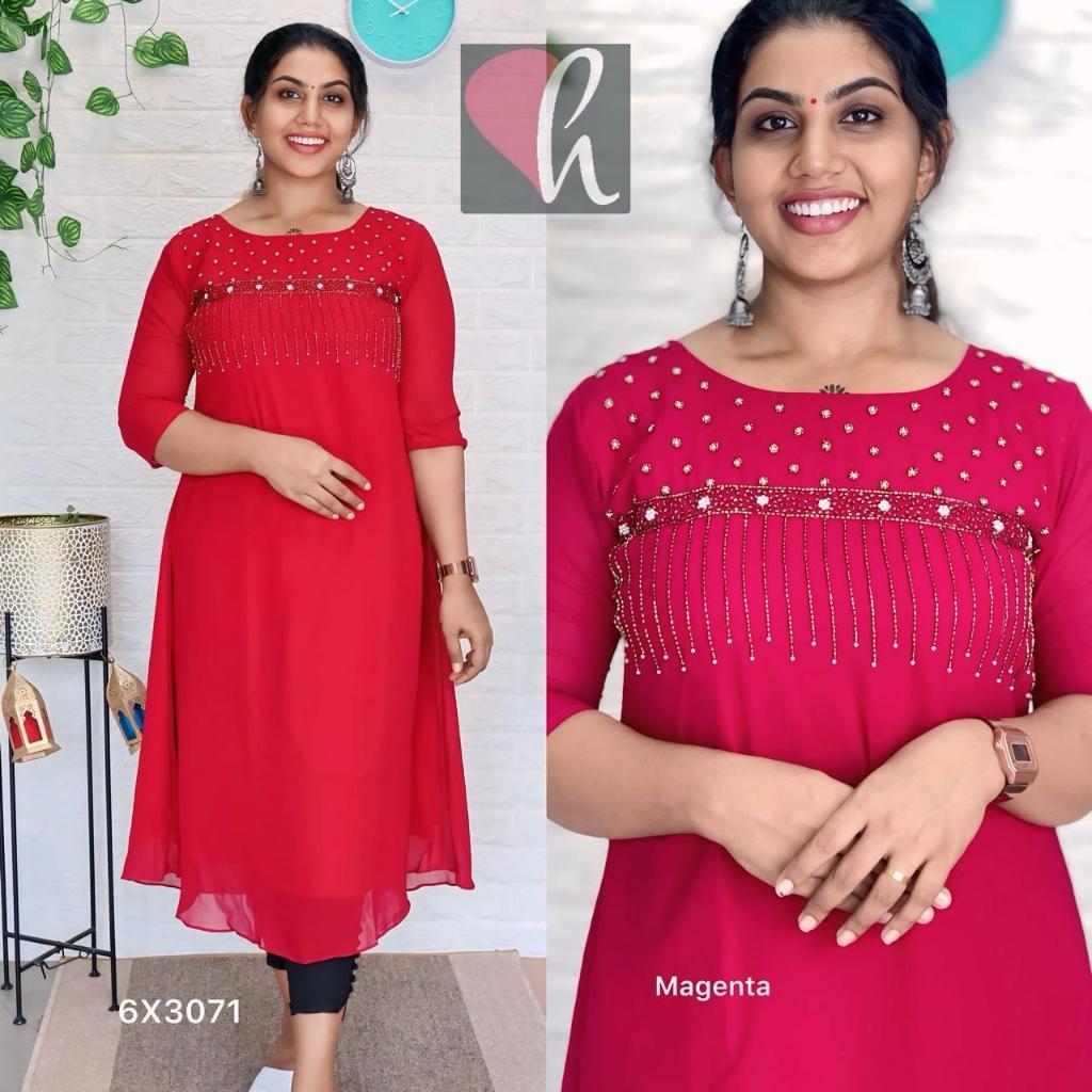 Faux Georgette Aline kurti with piping n white pearl beads work