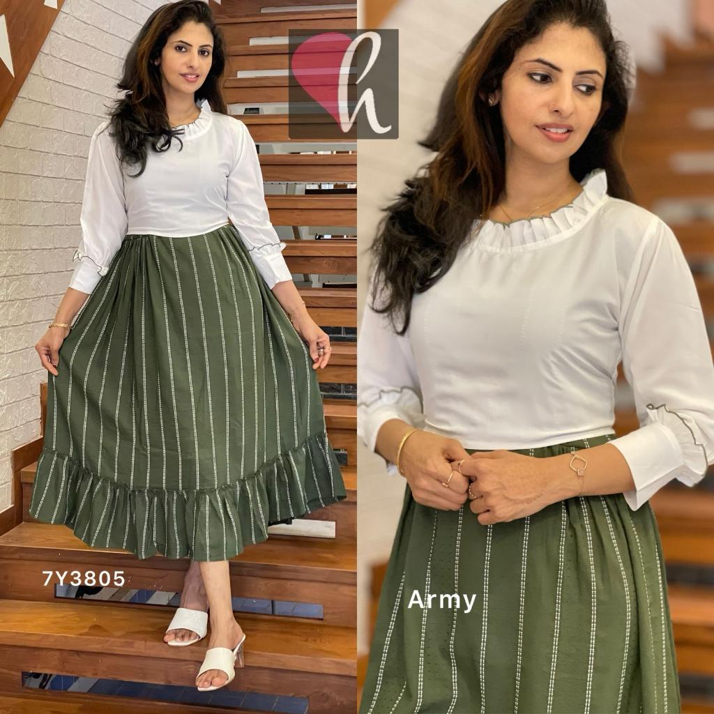 Size : L(39”) / XXL(42”)Length : 47”Lining : yesInner / outer with frill neck n cuffsSide pleated waistSemi flair Bottom frill