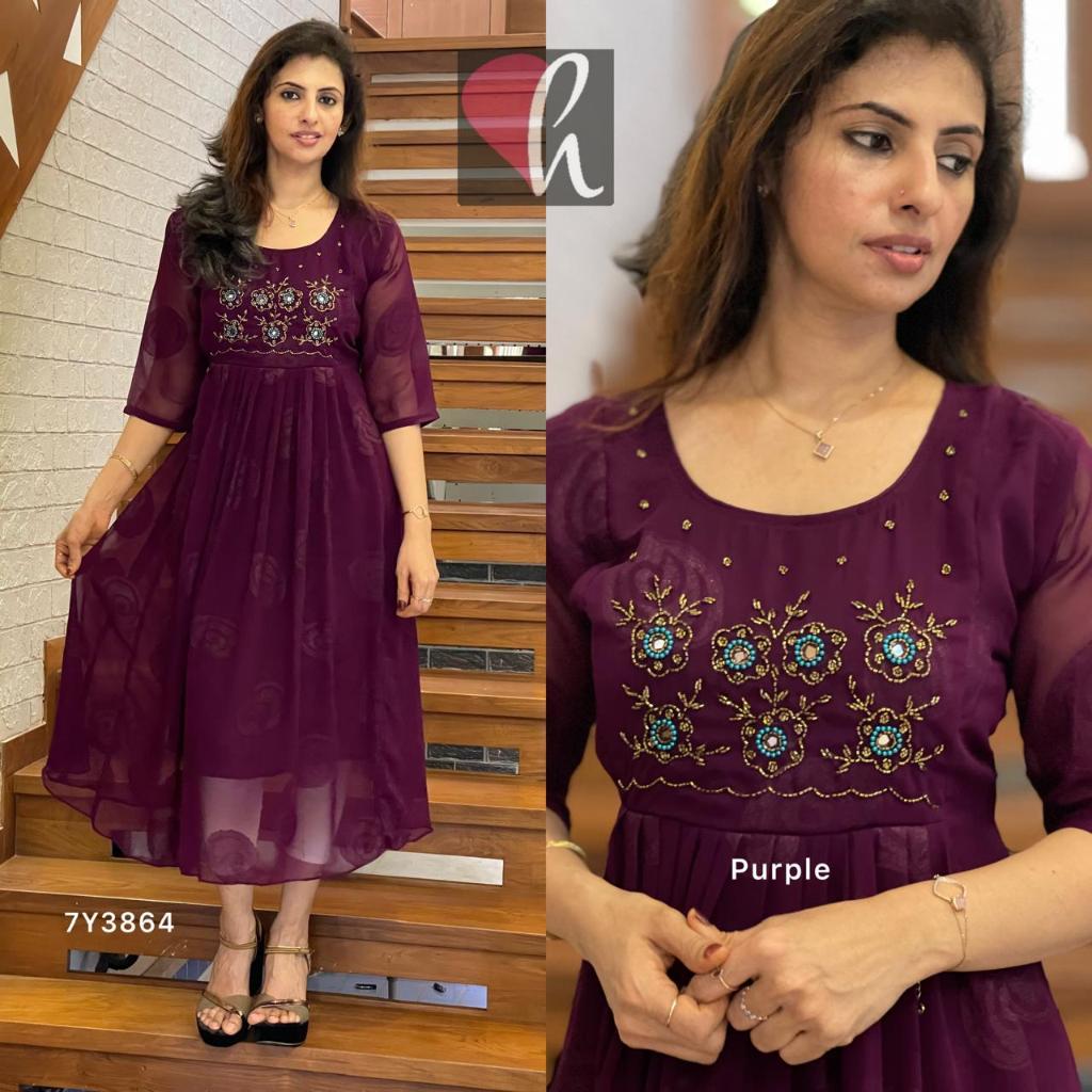 Faux Georgette Fosro shimmer texture kurti with piping , colour beads n mirror embroidered work