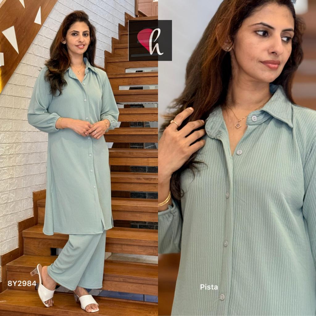 imported Lycra rib heavy fabrics plain colour co ord set