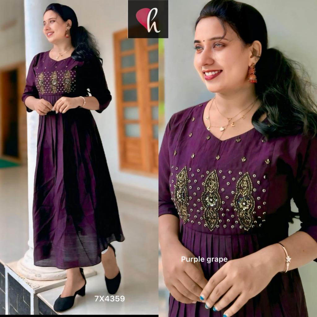 Vatican slub cotton silk semi flair Kurti with heavy handwork design