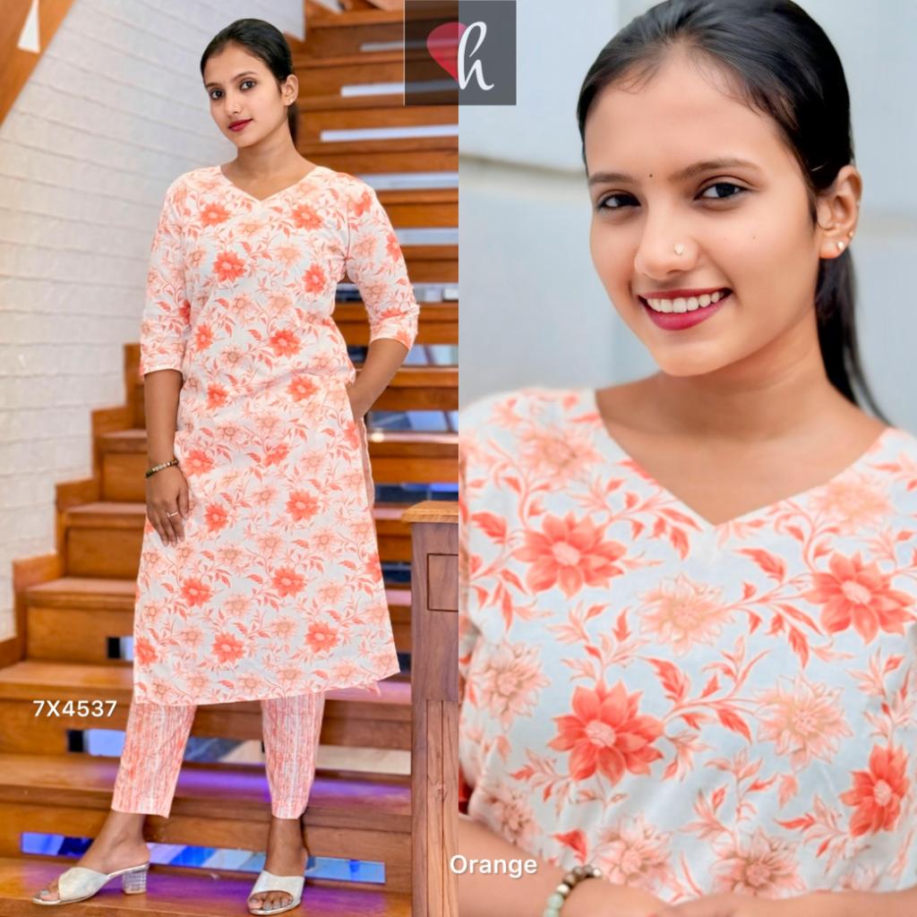 Pure cotton mix Co ord set (slit Kurti + pant)
