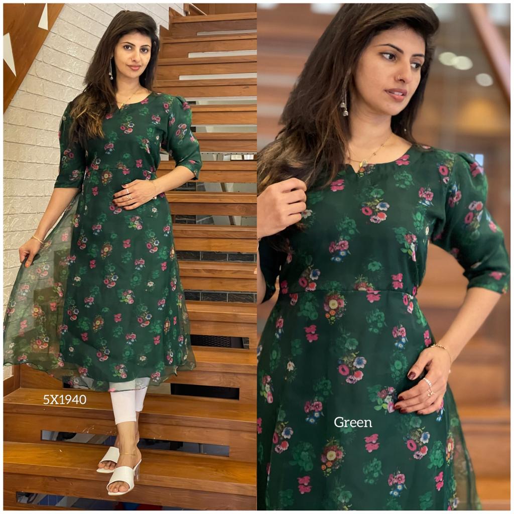 Organza Floral Print Kurti